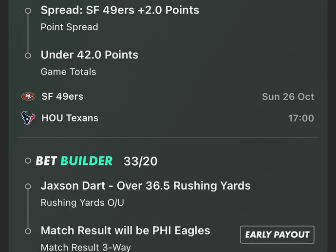 NFL week 6 points special £10 to £730 6/7/8 folds